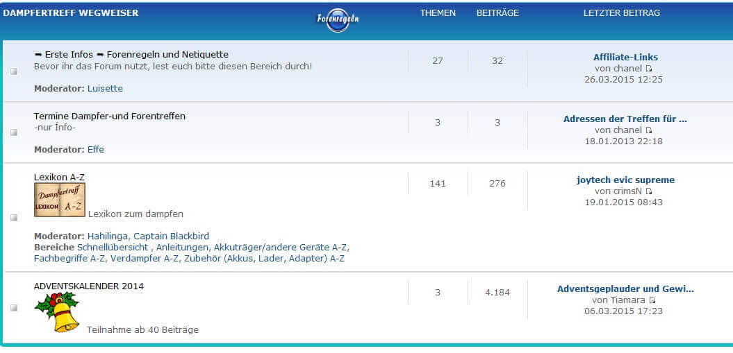 Es hat aber einen weiteren Grund, warum der Dampfer-Treff bei uns auf der Liste der 4 besten Dampfer-Foren erscheint: Selbst, wenn wir als Experten nach einer Information suchen – im Dampfertreff finden wir sie!